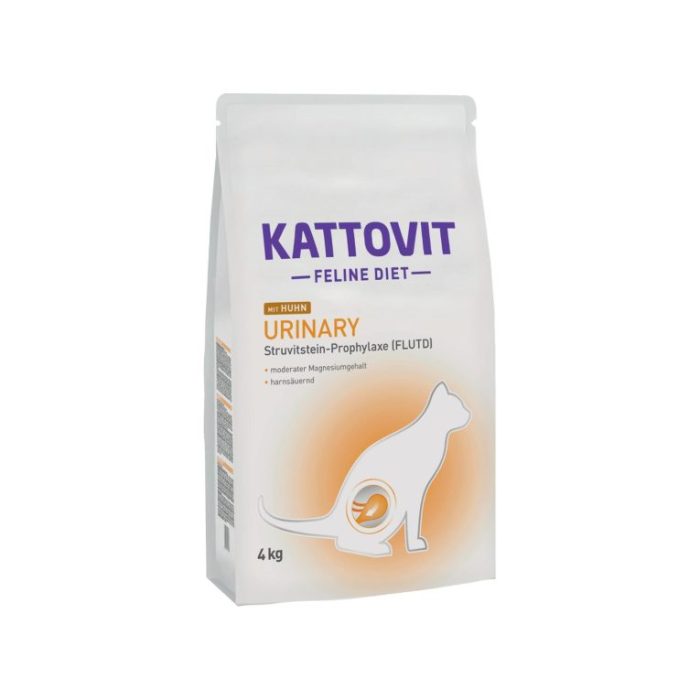 Η Kattovit Urinary Chicken έχει σχεδιαστεί για την μείωση και πρόληψη των λίθων στο ουροποιητικό σύστημα (Ασθένεια του κατώτερου ουροποιητικού συστήματος της γάτας – FLUTD). Η σύνθεση της αναπτύχθηκε έτσι ώστε η τιμή του pH των ούρων της γάτας να είναι κάτω από 6,5. Επιπλέον, έχει ιδιότητες οξίνισης των ούρων μέσω της DL-μεθειονίνης, του χλωριούχου αμμωνίου και της χαμηλής περιεκτικότητας σε μαγνήσιο.