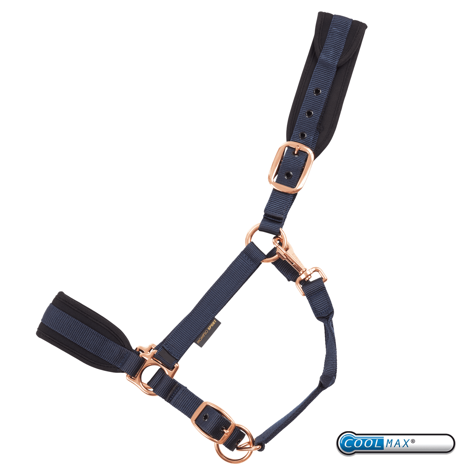 Καπίστρι με ενισχυμένο ιμάντα και μαλακές επενδύσεις με ενσωματωμένη τεχνολογία COOLMAX® για άμεση απορρόφησης υγρασίας και διατήρησης χαμηλών επιπέδων θερμοκρασίας στην πολύωρη και έντονη χρήση. Εξαιρετικά ανθεκτικές ραφές και ιμάντας πολλαπλής πλέξης χαρίζουν αντοχή στον χρόνο και στην χρήση. Rose-gold μεταλλικά στοιχεία και γάντζος άμεσης απασφάλισης. Απαλή αίσθηση, λείες επιφάνειες, πολλαπλές θέσεις αυξομείωσης. Λογότυπο MOMPSO SPORT. Ιδανικό καπίστρι για κάθε τύπο αλόγου, για καθημερινή χρήση, στην αθλητική και ελεύθερη ιππασία. Mix & Match με οδηγούς MOMPSO SPORT 2m και 4m