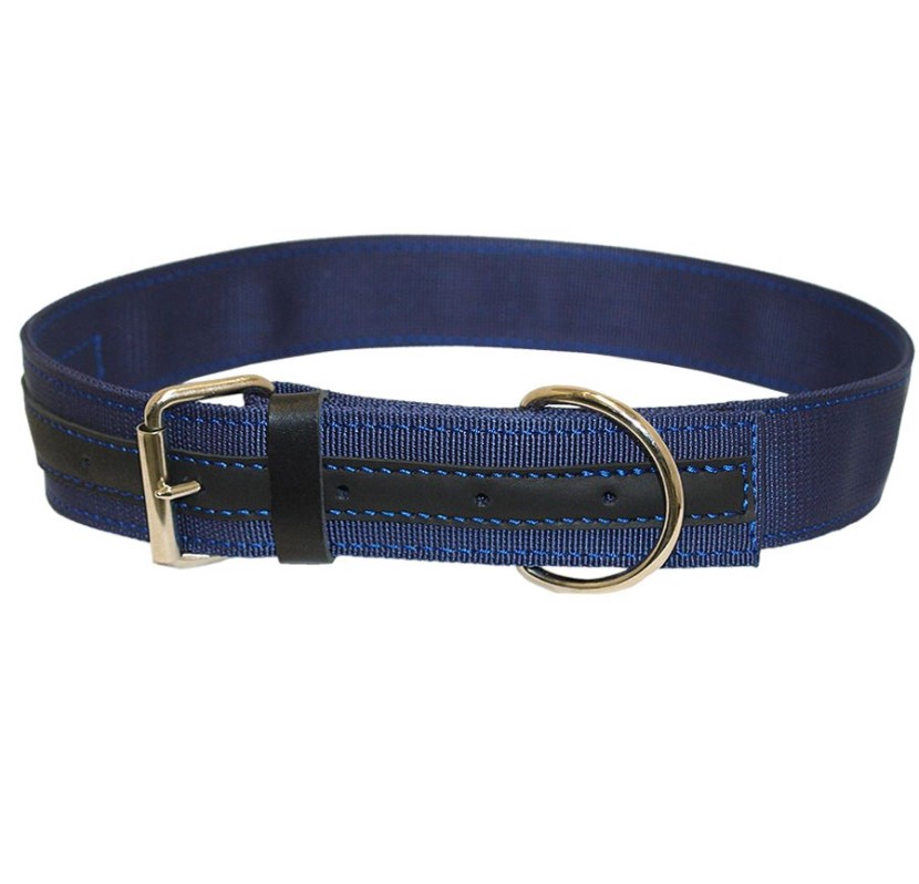 Χειροποίητο περιλαίμιο Argy’s Art κατασκευασμένο από ιμάντα (πολυπροπυλενίου) 5cm φάρδος με ενισχυμένη σιδερένια αγκράφα, κολλημένο κρίκο και δέρμα σε όλο το μήκος σε χρωματισμό της επιλογής σας.